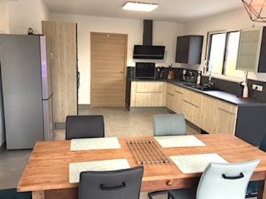 Das geräumige Wohn-/Esszimmer besitzt eine offene Küche. Die zahl-