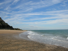 Strand vom Cap de Carteret - einem der schönsten der ganzen Halbinsel. Durch die angrenzende gewaltige Dünenlandschaft gibt es herrliche Rundwege. Wanderer finden hier selbst in der Hauptsaison noch Ruhe und Entspannung.